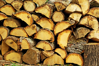Das Foto zeigt einen Stapel Brennholz. Eichenstämme wurden gespalten und auf einem Polterplatz gestapelt. Das Bild ist unter CC0 lizenziert und kann somit frei verwendet werden.