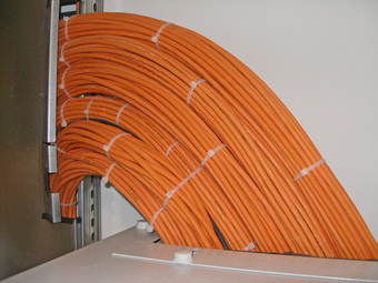 Das Bild gehört zur Serie "Computertechnik". Es zeigt Netzwerkkabel zu einem Serverschrank. Das Bild ist unter CC0 lizenziert und kann somit frei verwendet werden.