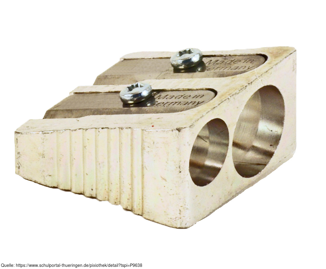 Das Foto gehört zur Serie "Schreibwaren". Es zeigt einen Stiftspitzer, auch Anspitzer oder kurz Spitzer genannt. Das Bild ist unter CC0 lizenziert und kann somit frei verwendet werden.