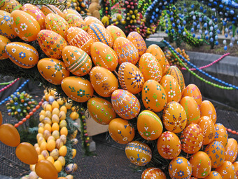 Das Foto gehört zur Serie "Ostern". Es zeigt die Osterkrone in Berga/Elster. 2015 bestand diese Dekoration aus über 15000 bemalten Eiern. Das Bild ist unter CC0 lizenziert und kann somit frei verwendet werden.