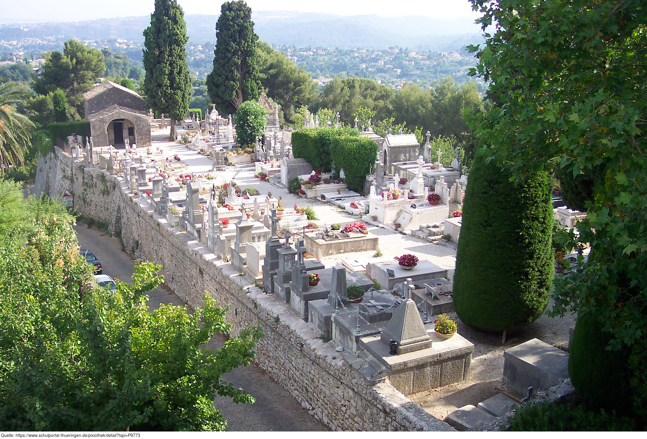 Das Bild gehört zur Serie "Provence und Côte d’Azur". Es zeigt einen Friedhof in einem Ort in Südfrankreich. Das Bild ist unter CC0 lizenziert und kann somit frei verwendet werden.