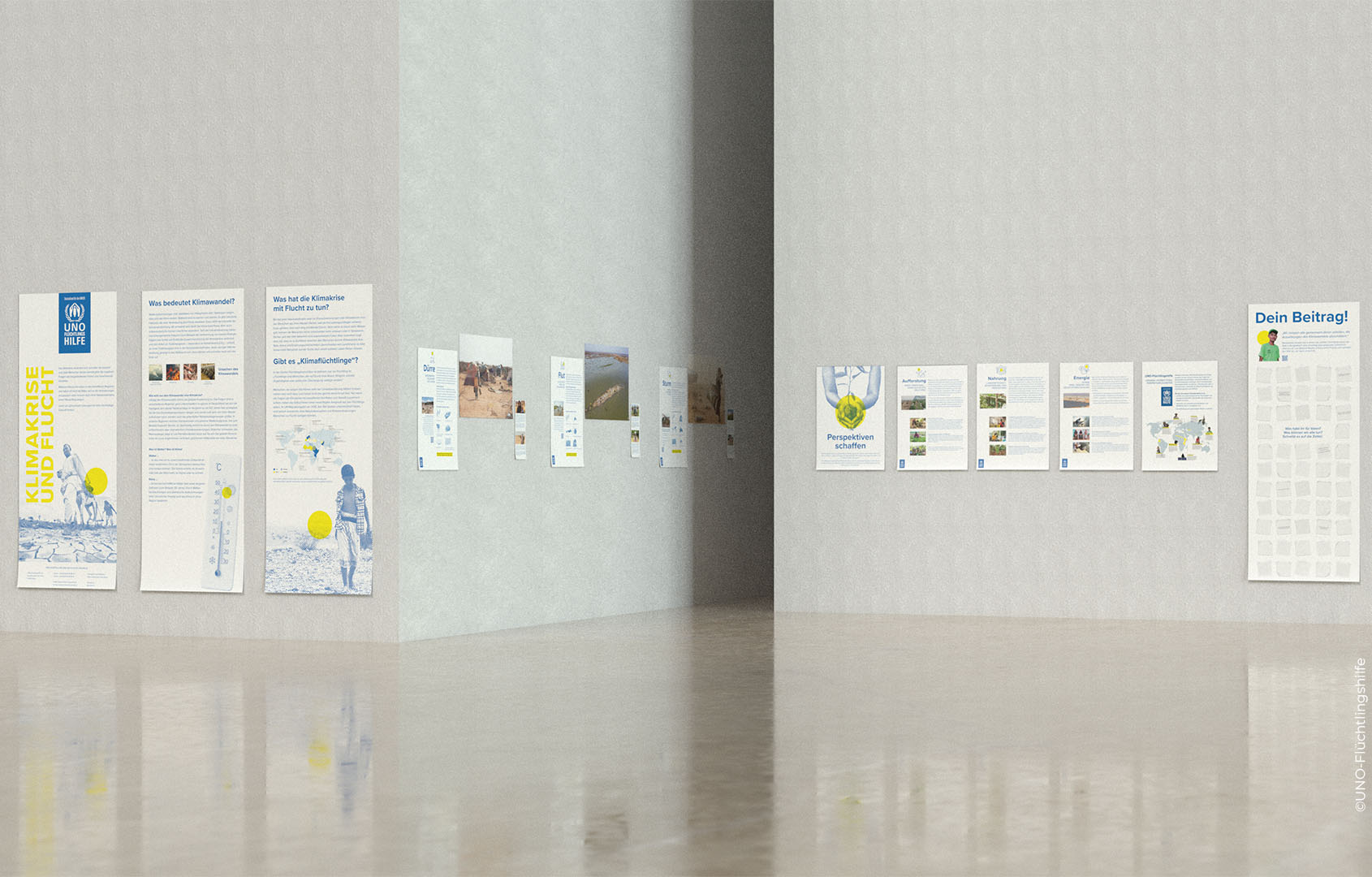 Die Ausstellung will zeigen, dass es noch nicht zu spät ist, wenn jeder Einzelne von uns klimaverträglich handelt und entscheidet. Darum werden Programme vorgestellt, bei denen im Flüchtlingskontext, klimaverträgliche Vorgehensweisen eingeführt wurden und den Folgen des Klimawandels begegnet wird. Dies sind sowohl landesweite Programme als auch Initiativen einzelner Flüchtlinge.