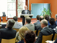 Staatssekretär Prof. Dr. Roland Merten spricht das Grußwort